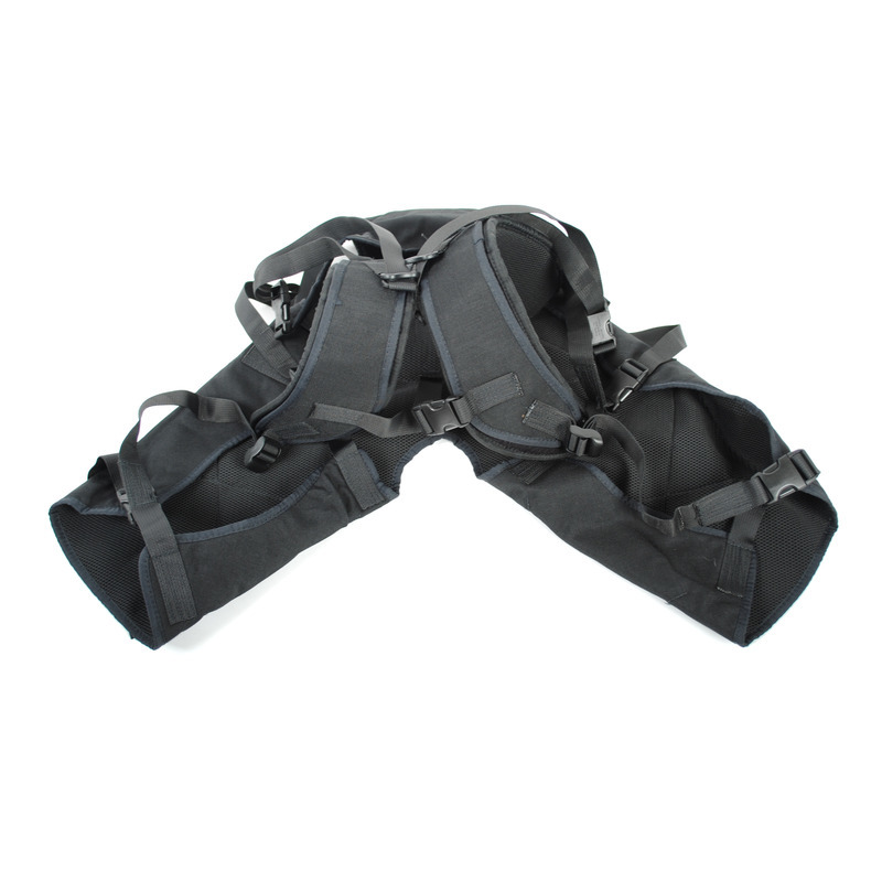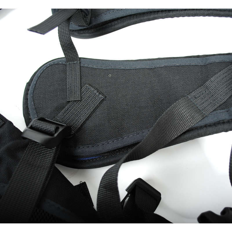 The Back Buddy has been designed to transport people with spinal cord injury on someone's back, in a way that is comfortable for both driver and passenger. Another application of the Back Buddy could be the assistance of casualties, in places where stretcher, ambulance or helicopter have difficulties to get to. The Back Buddy consists of two very sturdy shoulder straps and something that looks like a pair of cut open shorts, with buckles to close it. To operate the Back Buddy, clip open the leg sleeves, slide them under the passenger and strap them around the upper legs. Then the driver kneels in front of the passenger, puts on the shoulder straps, stands up and walks.