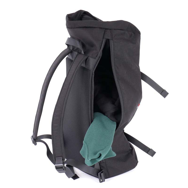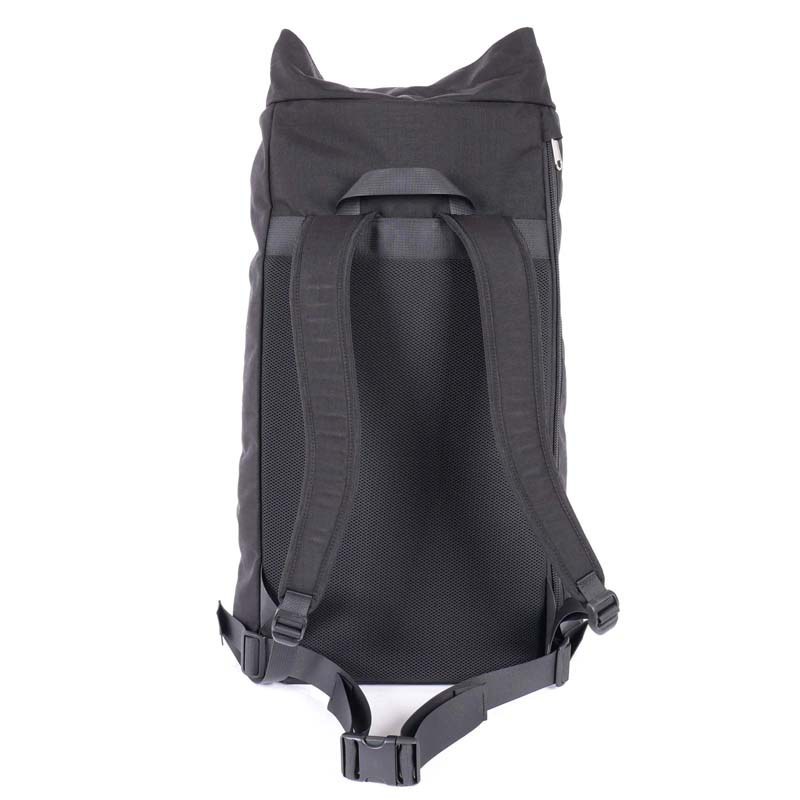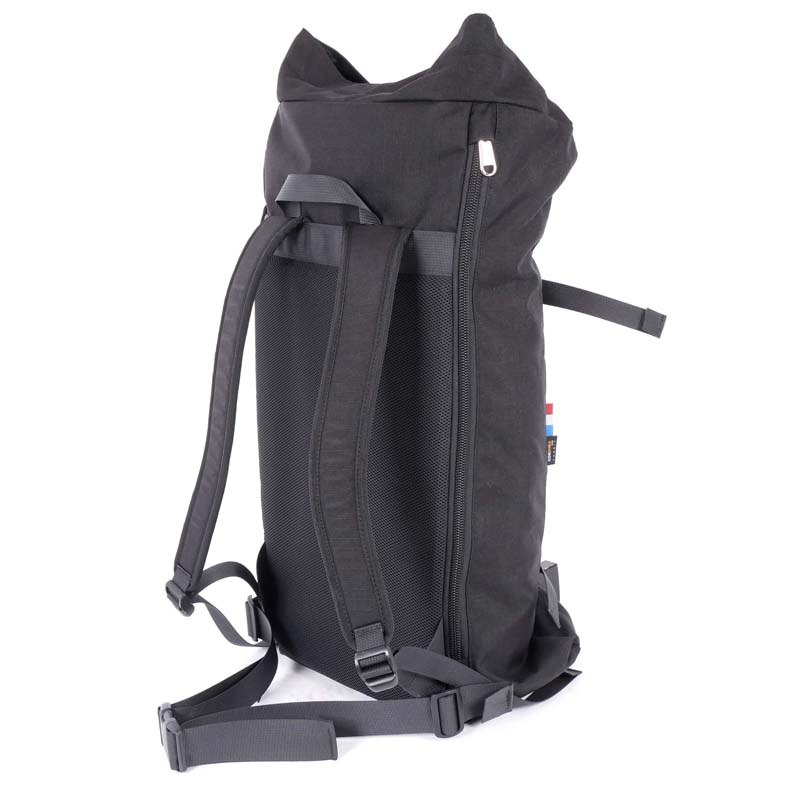 When riding your bike, you can still use the backpack. In a few easy and fast moves, you can compact it into a practical daypack. From this moment on you can use the short zipper on the back to reach the inside of the backpack to store clothes or groceries.
