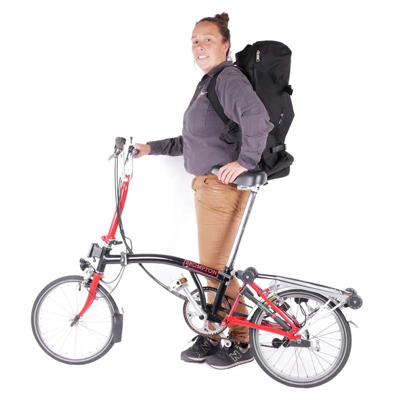Attention! Do you have a telescopic or extended seatpost on your Brompton? Check before purchasing this backpack that the length to the top of your saddle does not exceed 60 cm (when the bike is folded). This is the maximum height the backpack can currently accommodate.