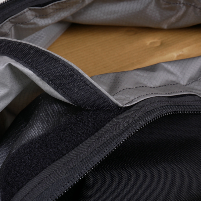 With this additional liner, you can make your Bullitt Bag V2 waterproof. The liner is made of a 120D ripstop nylon with a durable PU coating. All the seams of the liner are taped to ensure no water can get in. The liner attaches with velcro to the Bullitt Bag V2 and has the exact same shape and dimensions, so there is no compromise on the way you use your Bullitt Bag. The liner is made of only 3 panels with a very light silver/grey colour. This make it easier to look for an take stuff out of the bag, as more light is reflected into the bag and it’s all one smooth surface.