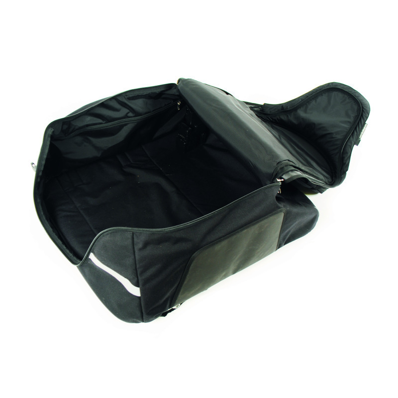 When transporting the Chubby by train, tow-bar and wheels can be detached with a twist of the hand, which visually leaves only a big duffle bag. The tow-bar can easily be stored inside and the shoulder strap and the two big handles make it easy to lift.