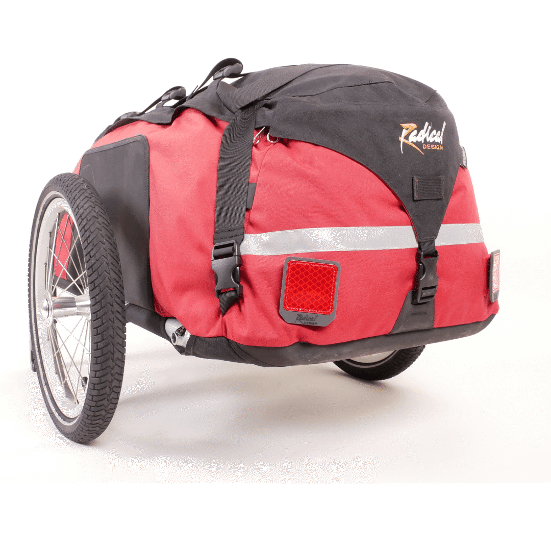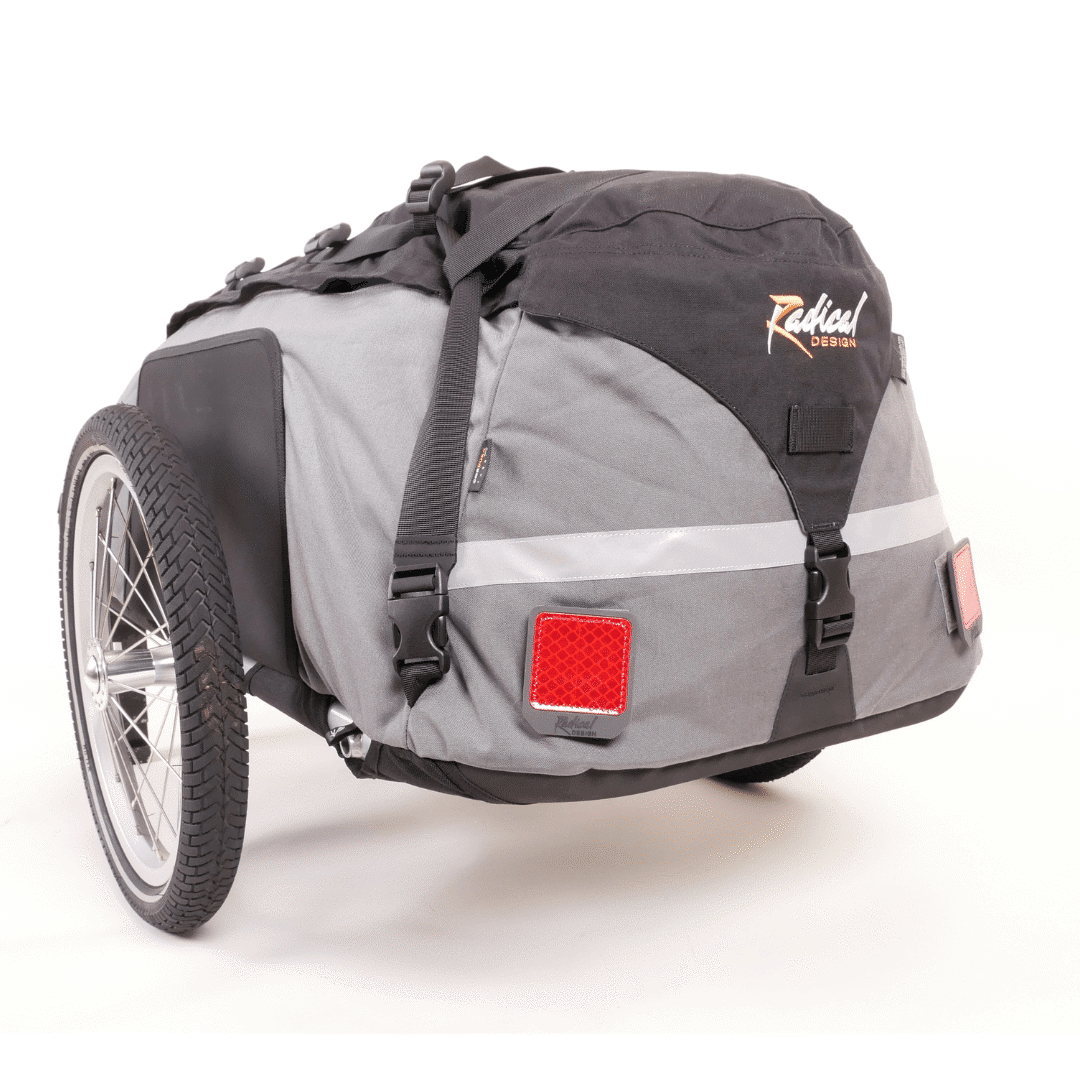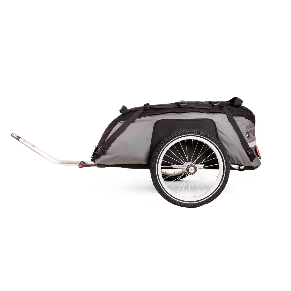 The Cyclone IV Trekking Bicycle Trailer is the fourth generation of the multiple award-winning Cyclone bike trailer. The Cyclone Bicycle Trailers have been used all over the world for cycling holidays, long bike rides and expeditions. Due to its robustness, very low rolling resistance and quick conversion to a duffle bag, the Cyclone IV Trekking is the perfect trailer for any bike trip with luggage. Available in two versions: one for bikes with 16-20 inch rear wheel and one for bikes with 26-29 inch rear wheel.