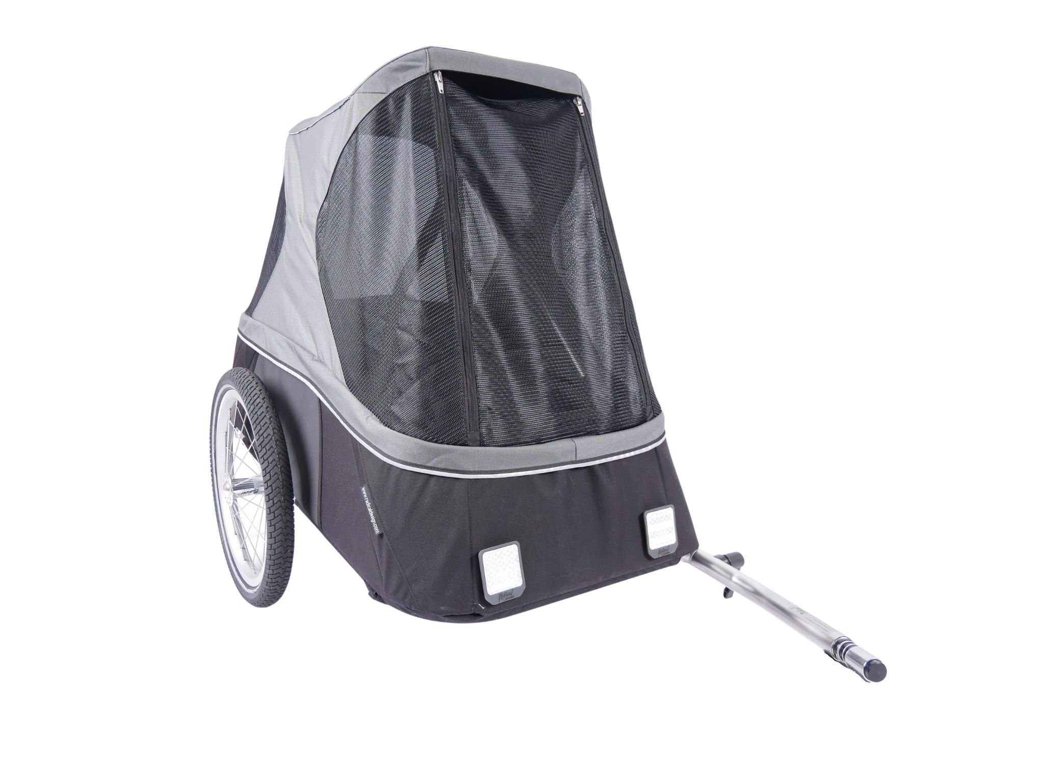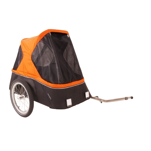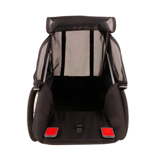 What makes the Cyclone Dog Trailer so special? It is compact, foldable (easily fits under your bed when folded), and has a low entry for your four-legged friend. Use it as a bench (also for the car), complete with a supplied leash for securing your dog. Ventilation is possible through the front and back, and for extra visibility during the day and night, reflectors, reflective piping, and a lamp holder are added. An optional removable dog cushion is available.