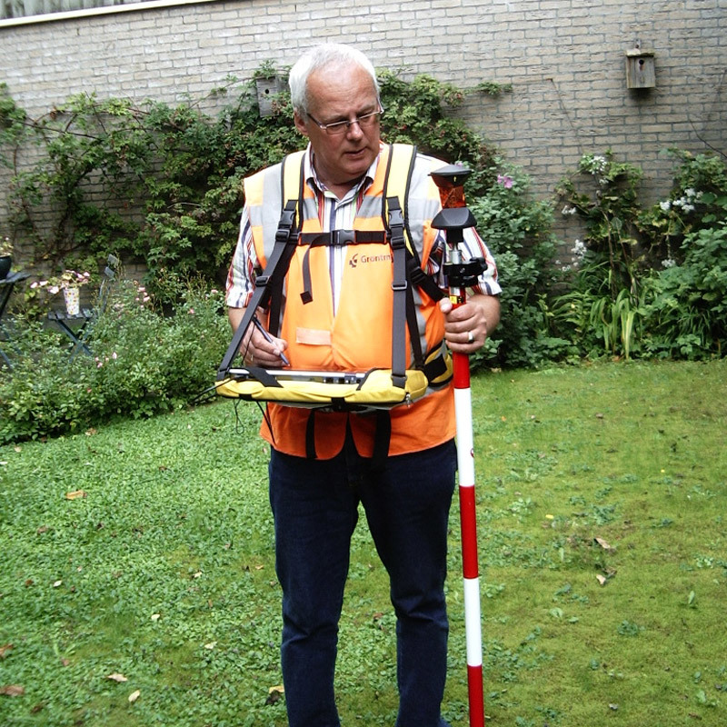 The Tablet (to be ordered separately) to which the computer is attached can be unclipped from the carrier. This enables the engineer to use the Tablet for different purposes. Thanks to the adjustable straps of the Tablet, the computer can be positioned at different heights and angles, depending on the circumstances and personal taste of the professional, making working with the computer more fun. On request the Geowalker system can be customised; e.g. the Tablet can be made-to-measure to a specific computer and the carrier can be produced in multiple colours.