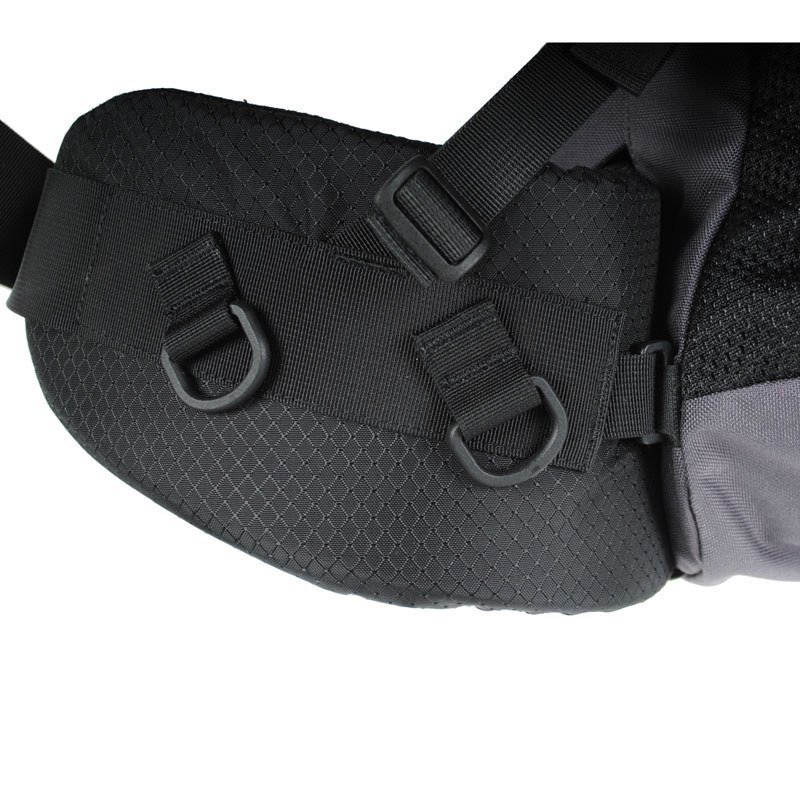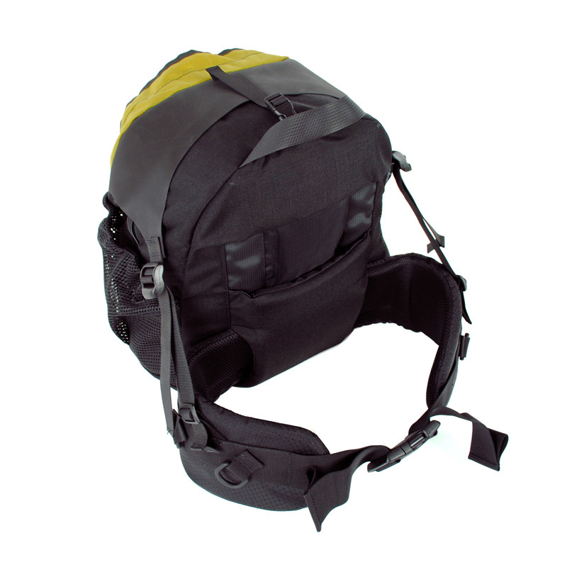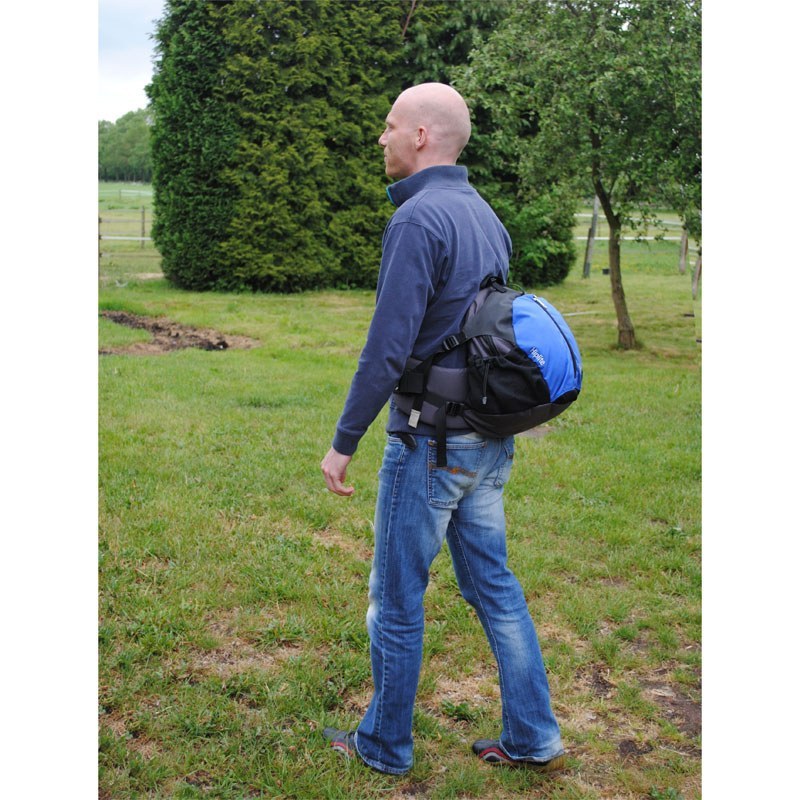 There are many lumbar packs on the market, but only with the Hiplite one can really walk all day with serious weight. The Hiplite is like a rucksack without shoulder straps. Thanks to the frame and the full-sized hip belt the 25 litre bag is very comfortable to carry. This makes it suitable for people with shoulder or back problems. The Hiplite is made of indestructible Cordura 1000.