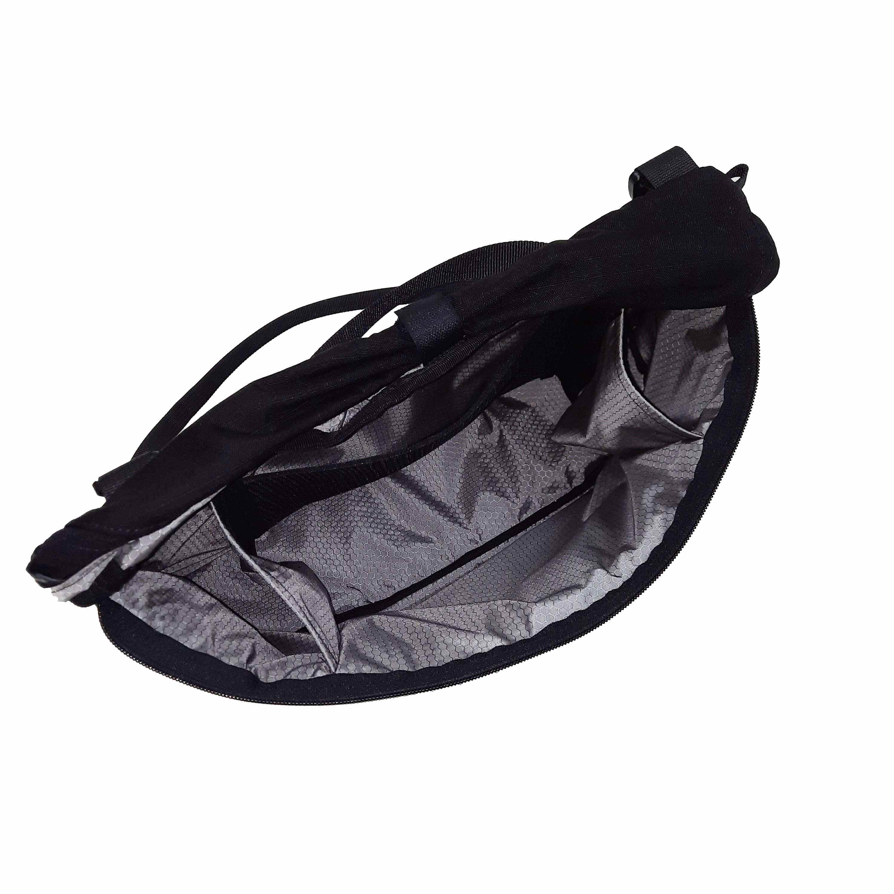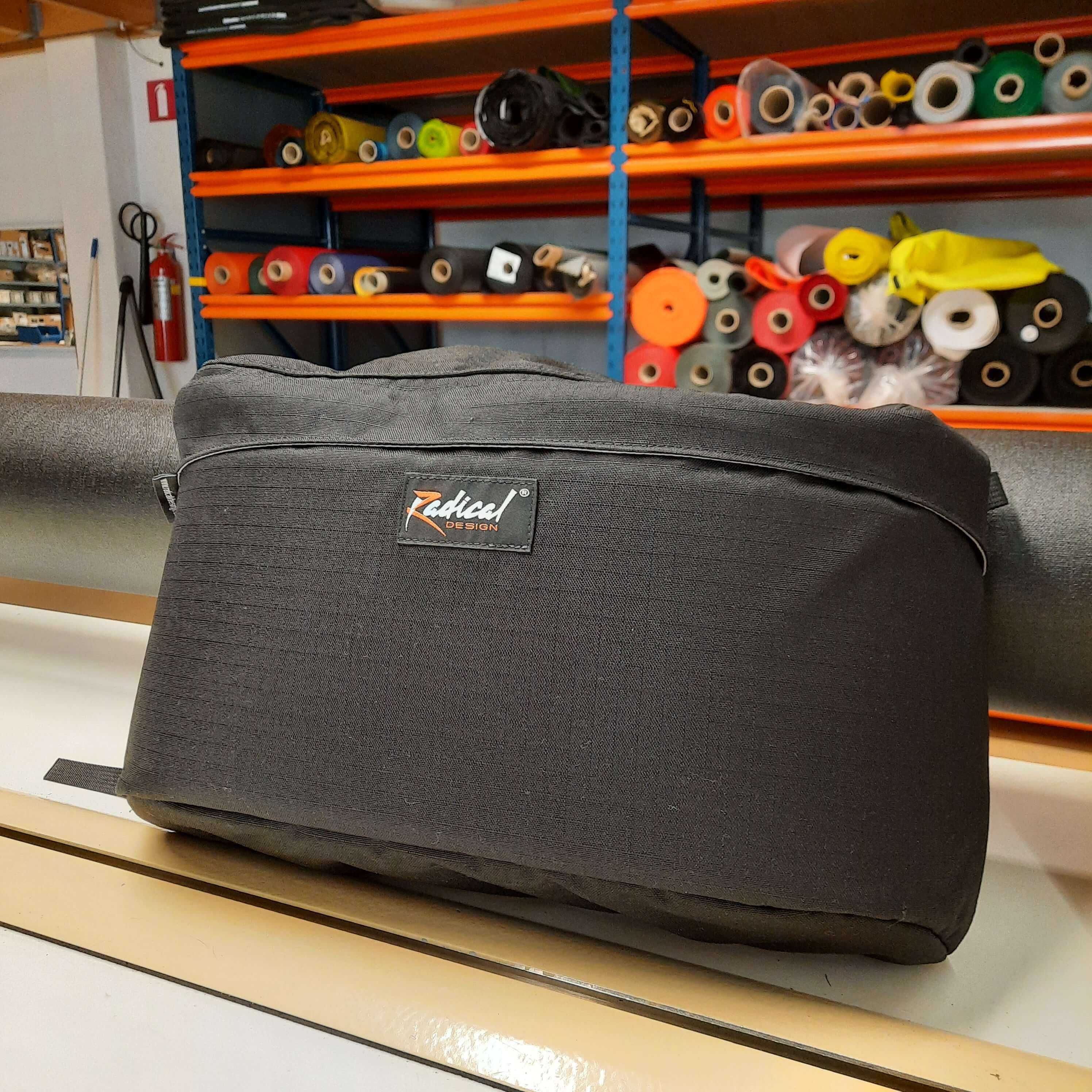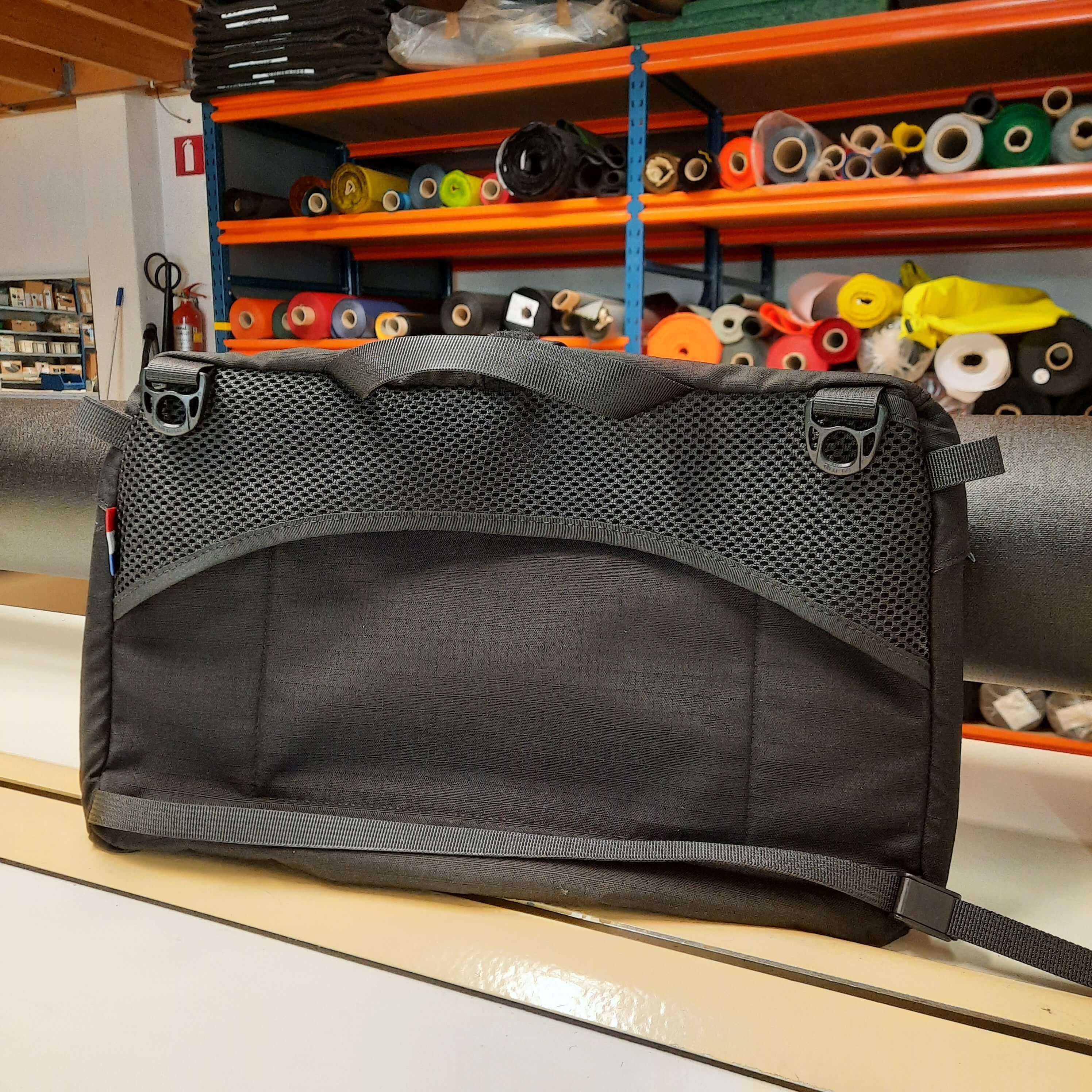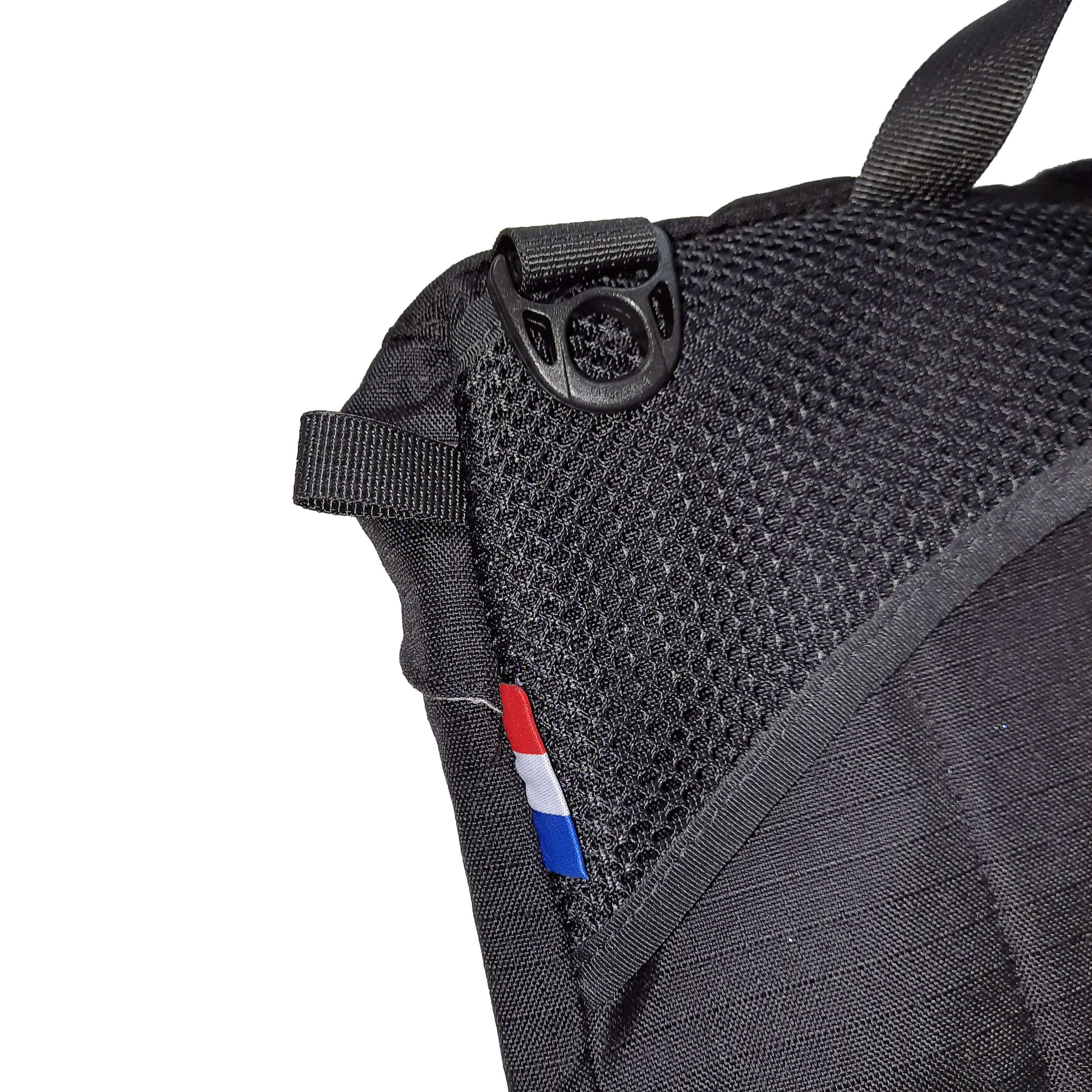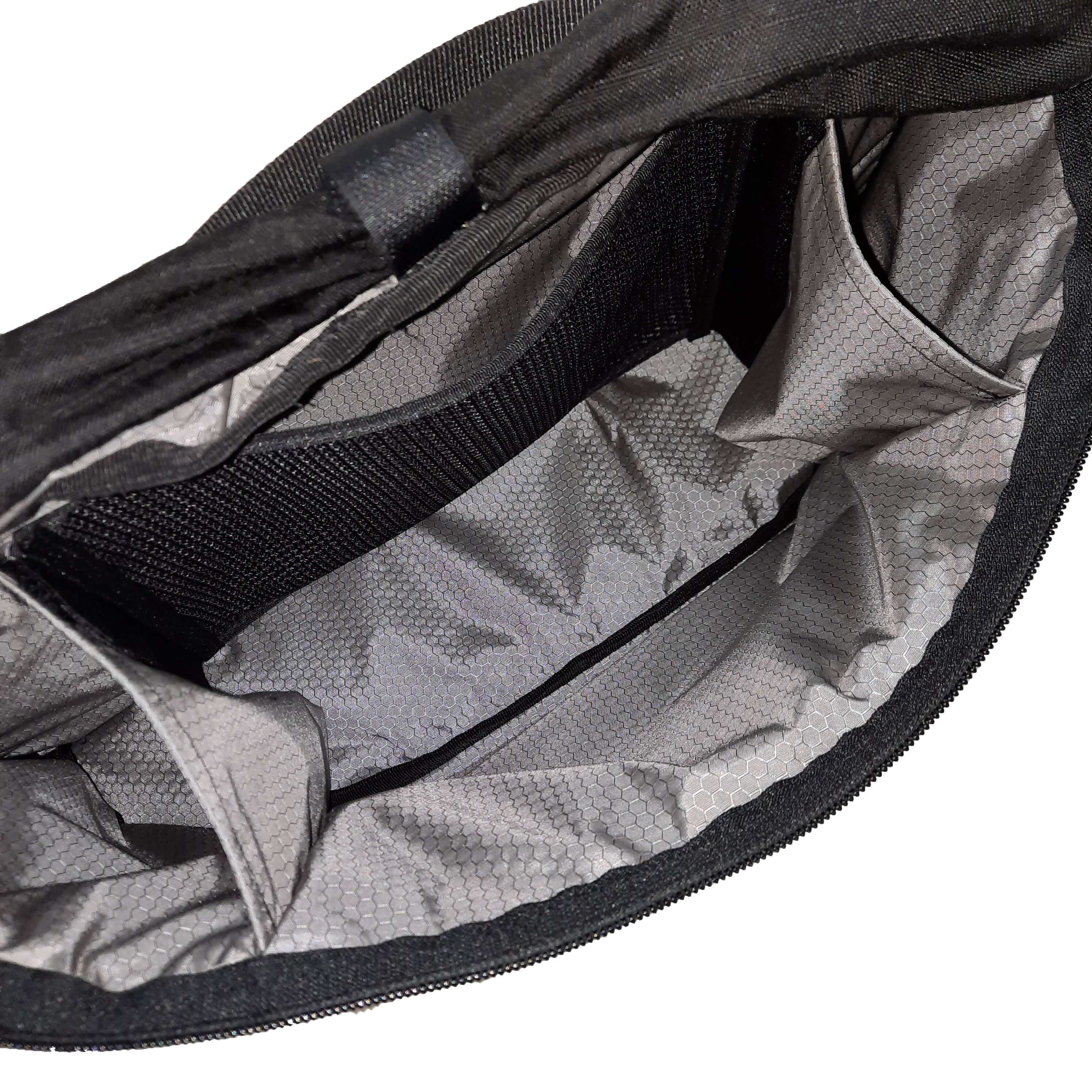 With 12 liters and 330 grams, it is compact and it offers space for luggage that you want to keep close at hand and which you want to store properly. The supplied shoulder strap makes it possible to take it as a handbag when you decide to leave your bike for a moment, for example when you want to walk in to a shop or visit a touristic point. It makes it easy to take your valuable belongings with you. The inside of the bag has optional space for 2 water bottles and there is a small extra pocket made out of mesh.