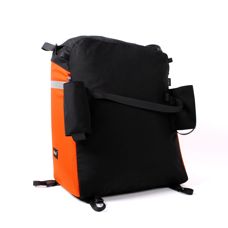 The Rack Bag Jumbo recumbent bag has been designed for delta-style three-wheelers like the Dutch Sinner Comfort. it sits happily between the two rear wheels on a wide rack. A true replacement of the car trunk. To attach it to your trike, slide the front strap over your recumbent seat, place the bag on your rack, then attach at least two of the four rack straps.