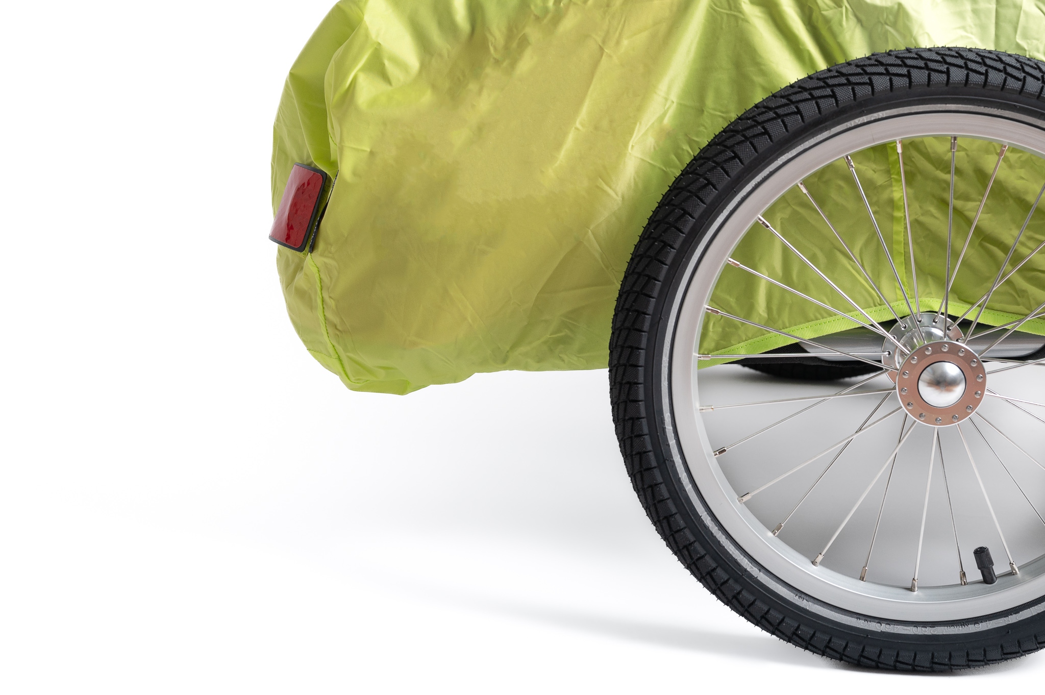 The Cyclone rain cover, which comes standard with each Cyclone, is a lightweight solution to keep your trailer and its contents dry and clean. At only 150 grams, this small package will always find a place in the huge Cyclone bag. When it starts raining, the cover attaches in seconds and gets securely velcroed around the towbar connector. Many people leave it on all day, no matter the weather, as its protection against dirt is just as much appreciated.