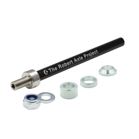 With this 12mm Thru Axle, you can attach any of our Radical Design bicycle trailers (or a trailer of any other brand) to any bike with a rear 12mm thru axle.