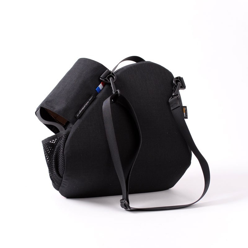 The Velomobile bag has been specially designed for velomobiles. The right side bag has an integrated bottle holder. The Velomobile bag is almost fully reinforced with foam, in order to make it stand up against the wall by itself. The bottom is slanting slightly, making it follow well the shape of the hull and preventing it to tip over. On the outside of the bag there are two mesh pockets to store smalll items, inside the bag there is one more pocket for extra segragation.