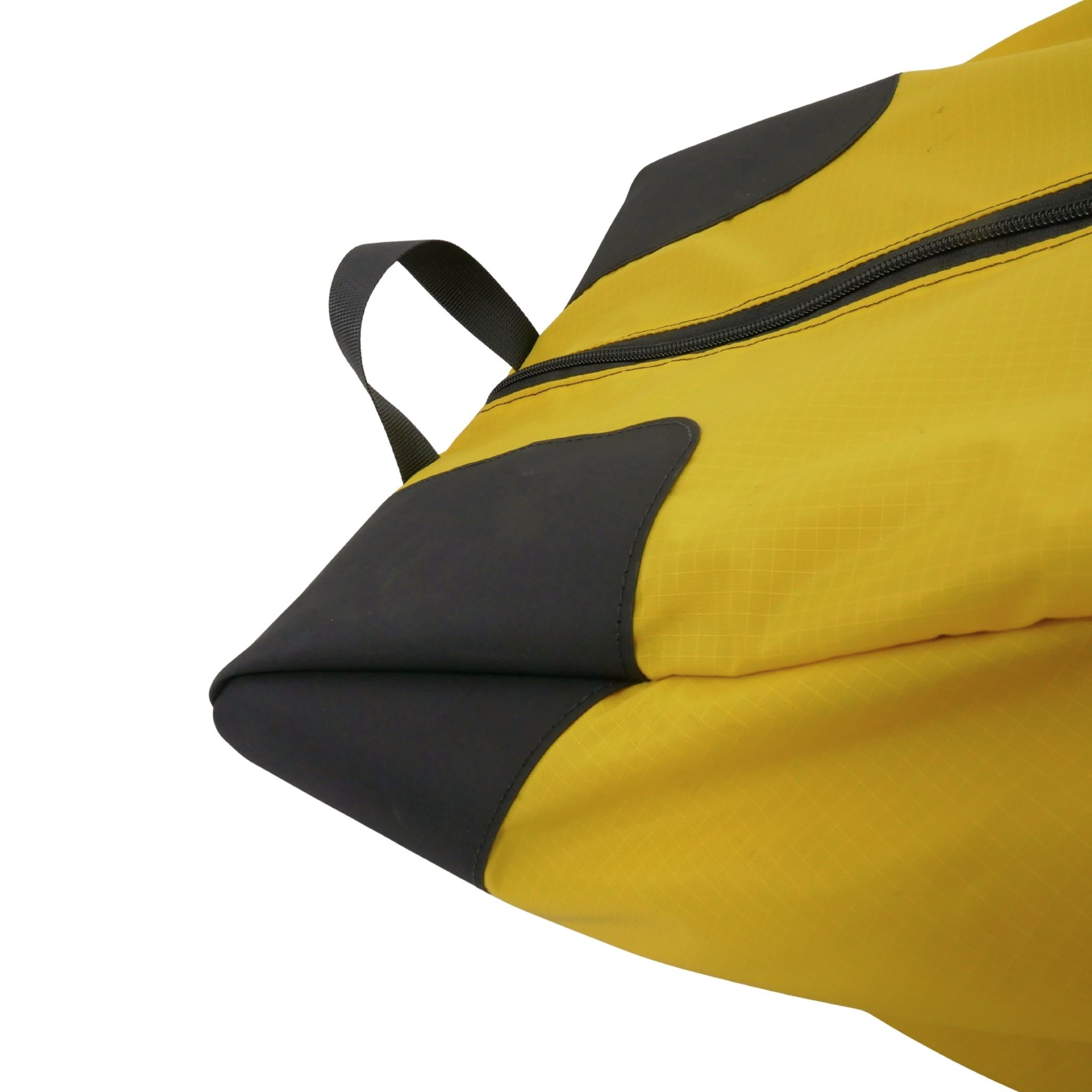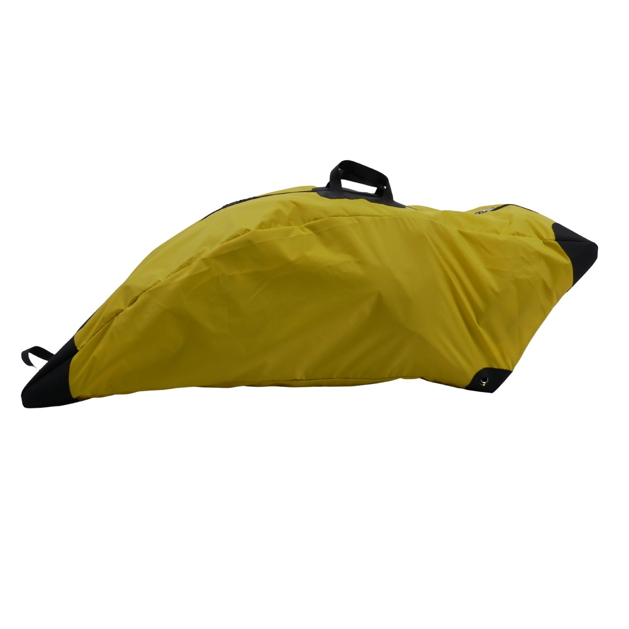 Reinforced Hypalon patches on the corners provide targeted abrasion and impact protection at critical contact points. During the design process, careful consideration was given to achieving an optimal balance between protection and added weight, ensuring effective safeguarding of the Wheelie without unnecessary bulk. For additional security, users can always add extra protective materials inside the cover according to their travel needs.