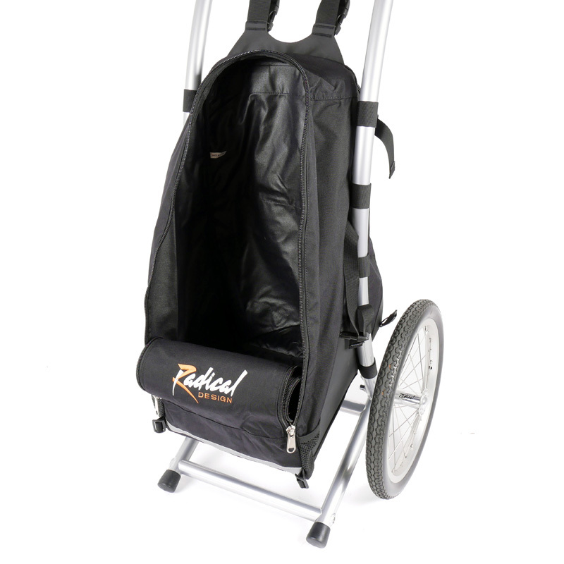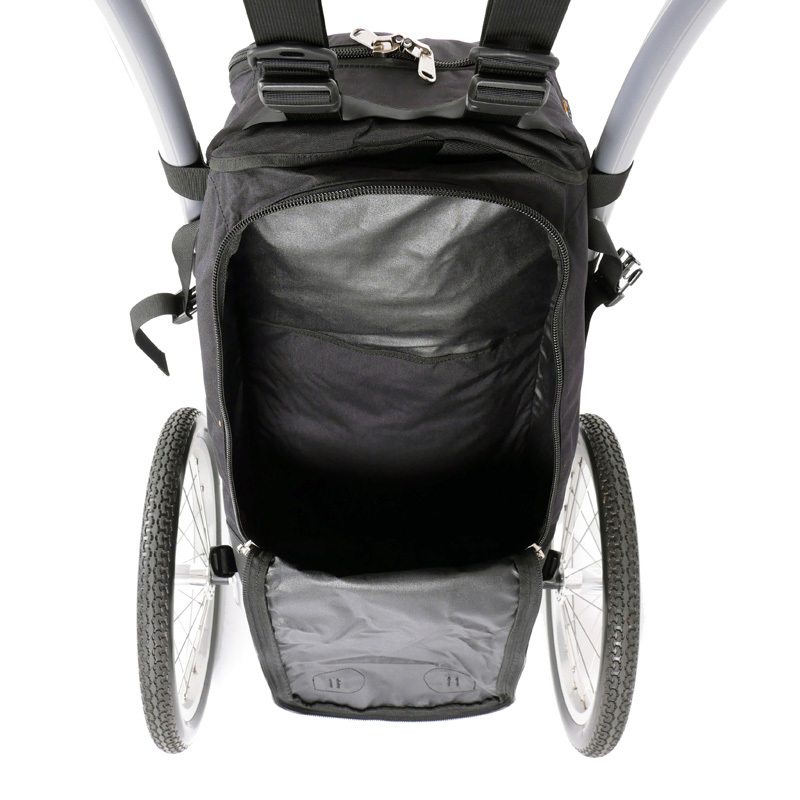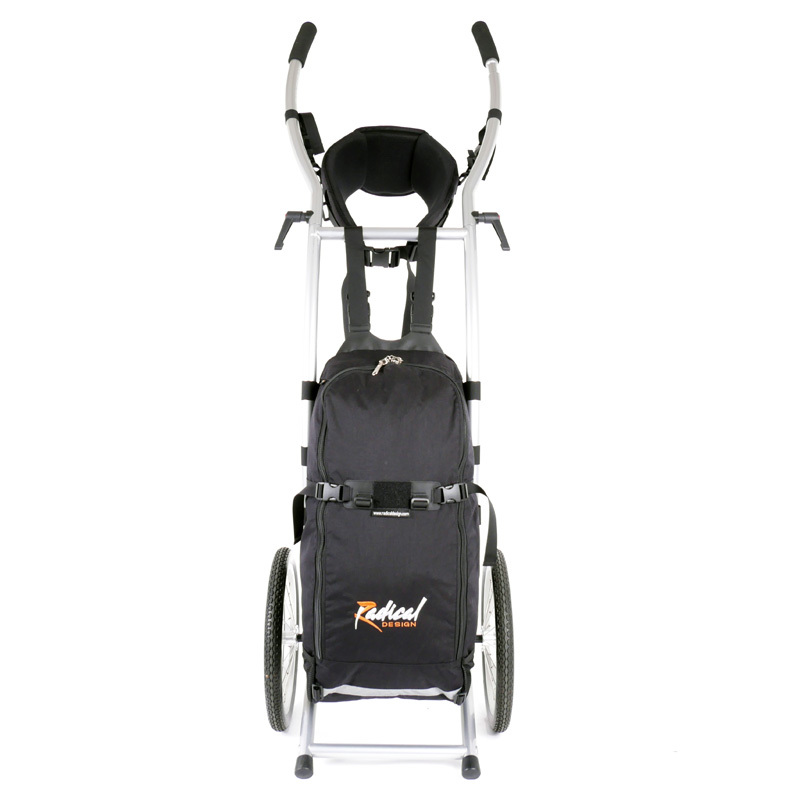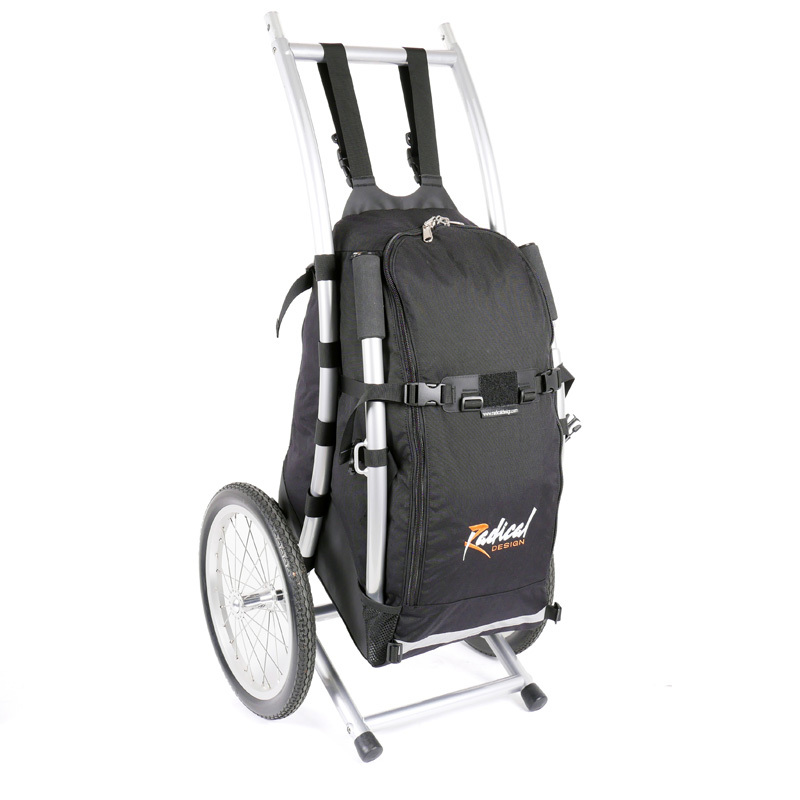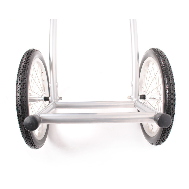 The Wheelie V Traveller HD Walking Trailer is the standard model equipped with a 75 liter bag. In this fifth version we TIG welded the bushings and placed an extra crossbar making this the strongest and most rigid frame to date. Also the hipbelt has been completely redesigned and is now fully adjustable to be even more comfortable.